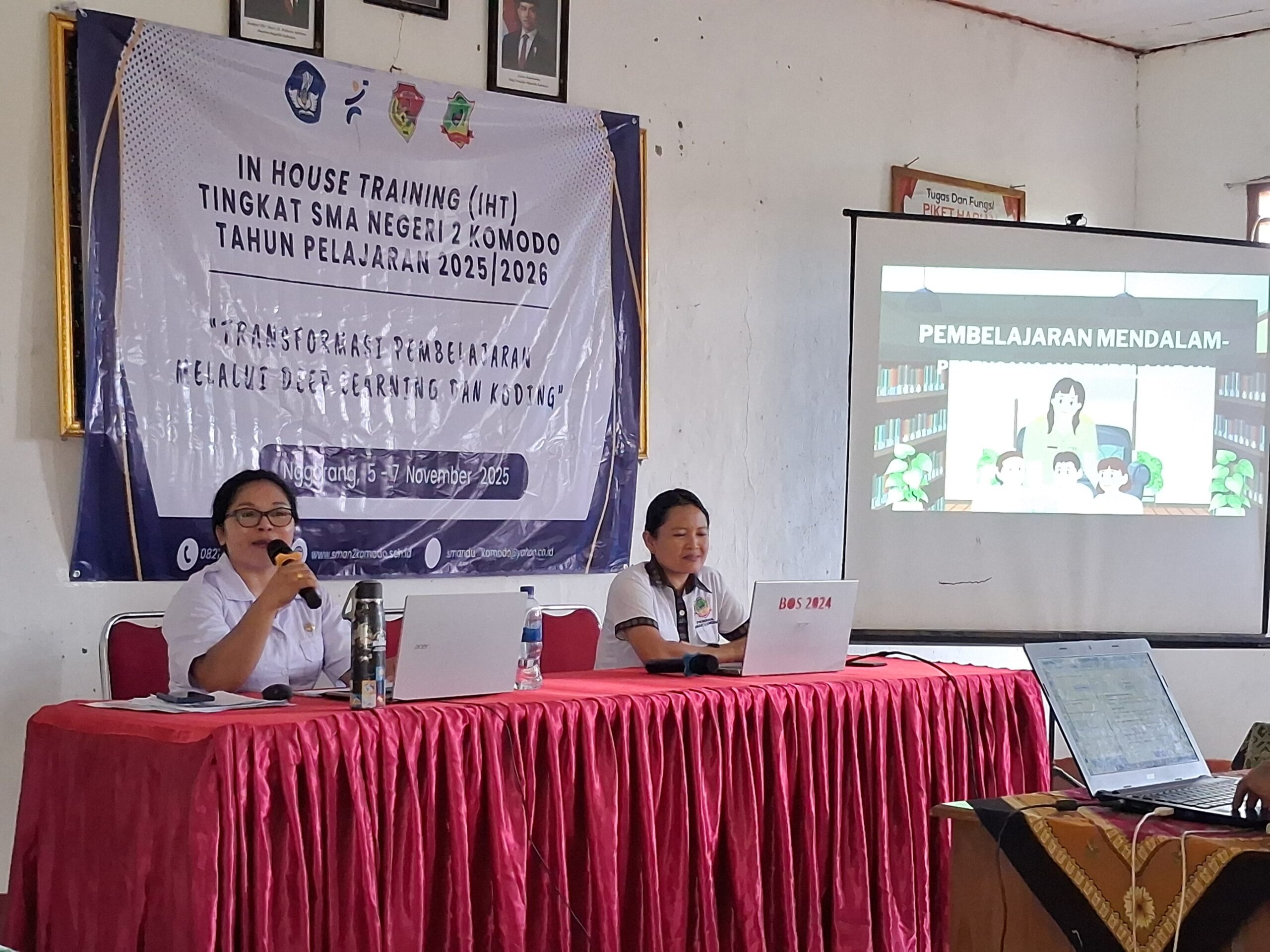 SMANDUKOMODO.COM– Dalam rangka meningkatkan kompetensi dan profesionalisme guru, SMA Negeri 2 Komodo  menyelenggarakan kegiatan In House Training (IHT) bertema “Transformasi Pembelajaran melalui Deep Learning dan Koding”. Kegiatan ini berlangsung selama tiga hari, mulai Rabu hingga Jumat, 5–7 November 2025, bertempat di Ruang Guru SMA Negeri 2 Komodo.
