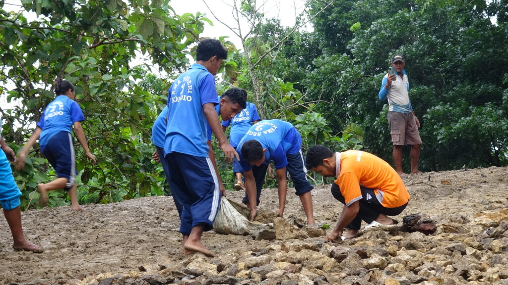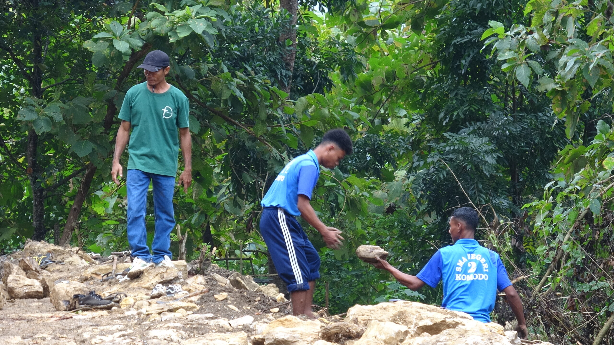 “Walaupun jalannya licin dan kami harus mengangkat batu, kami tetap semangat karena bisa membantu. Kami merasa senang bisa bekerja bersama teman-teman untuk kegiatan yang bermanfaat,” katanya.